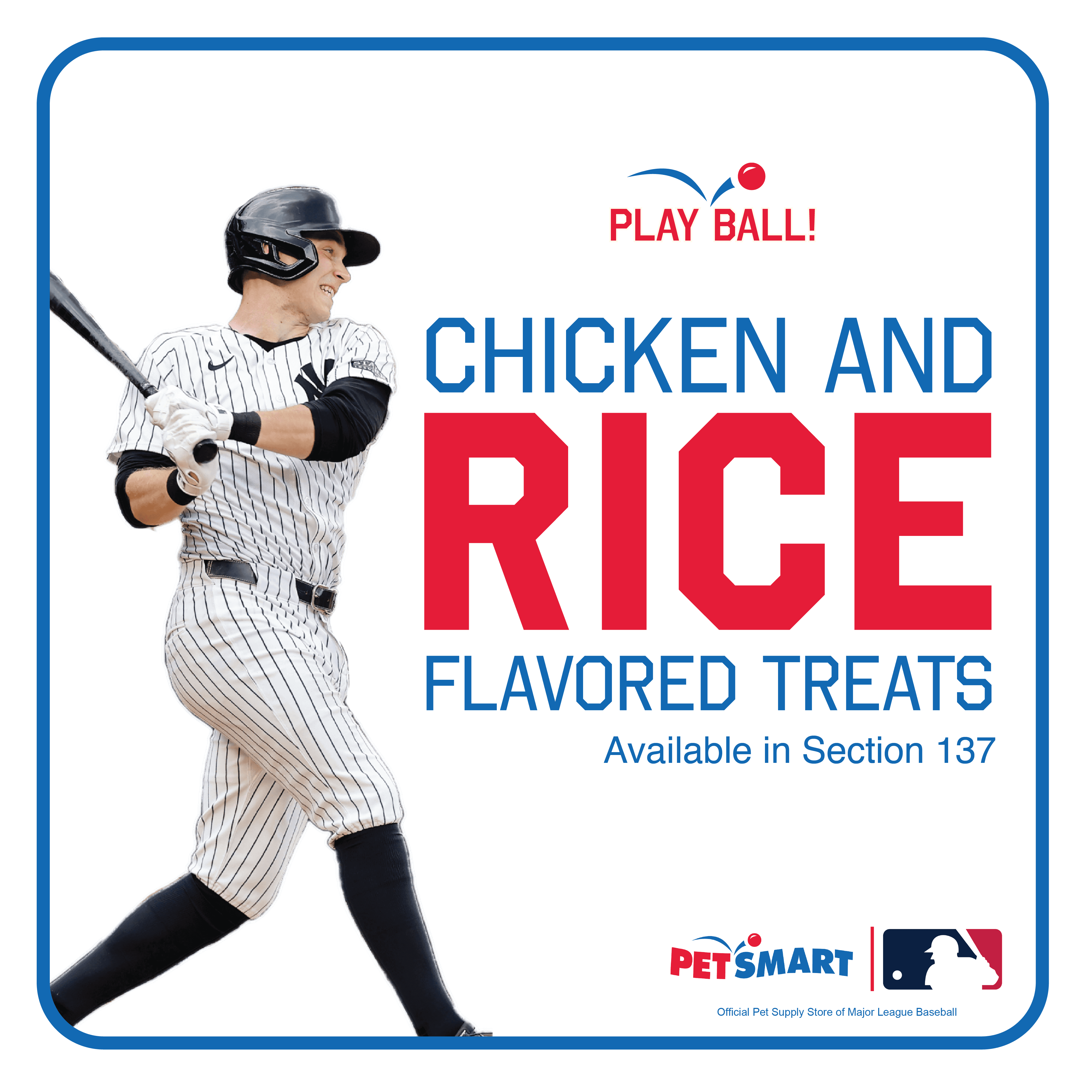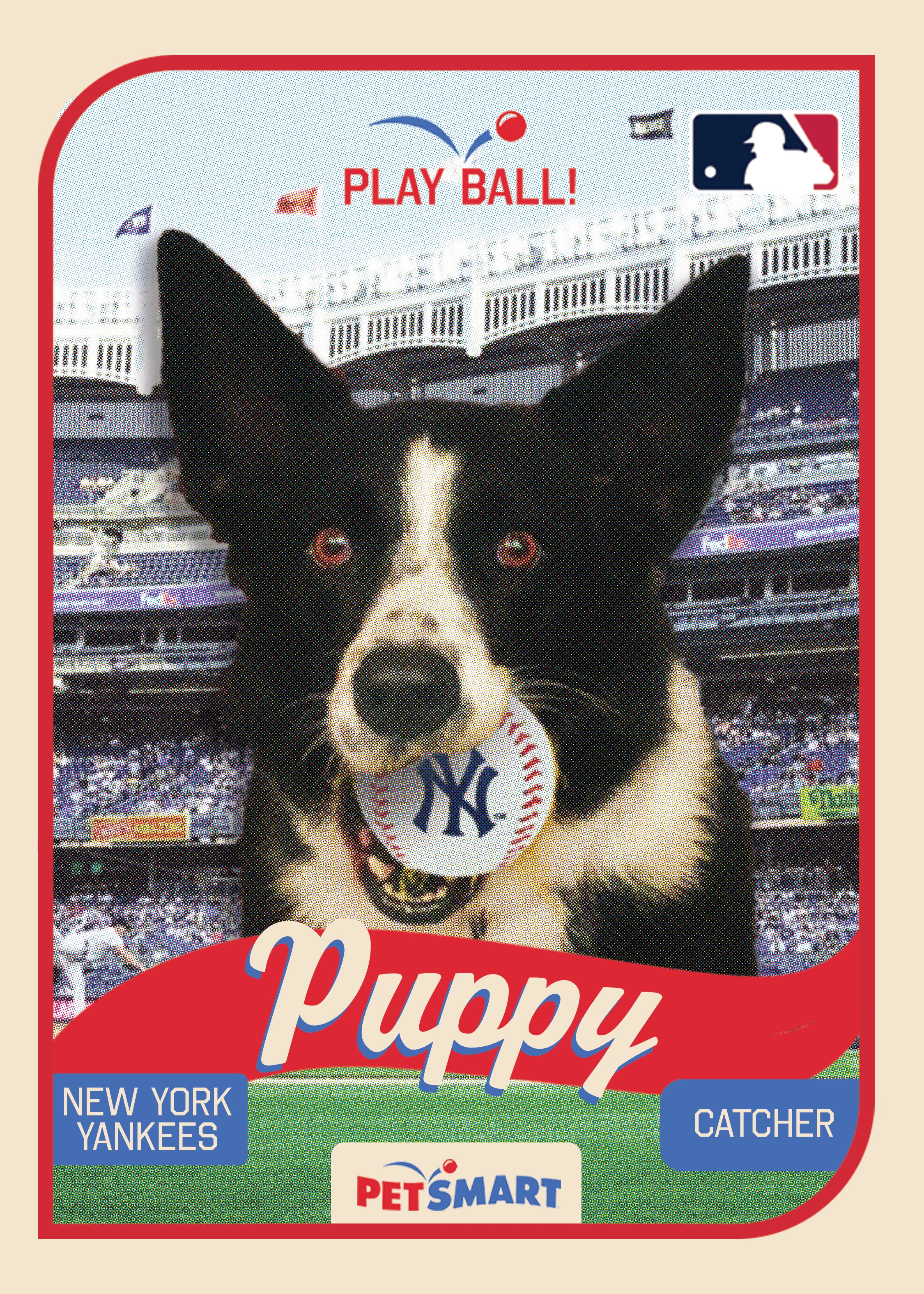 On certain "event" days, like MLB Opening Day, PetSmart Grooming, PetsHotel, Training, and Doggie Day Camp customers will receive personalized baseball cards of their pet. The cards will be branded with the PLAY BALL!, MLB, and PetSmart logos, as well as themed with the most local MLB team.