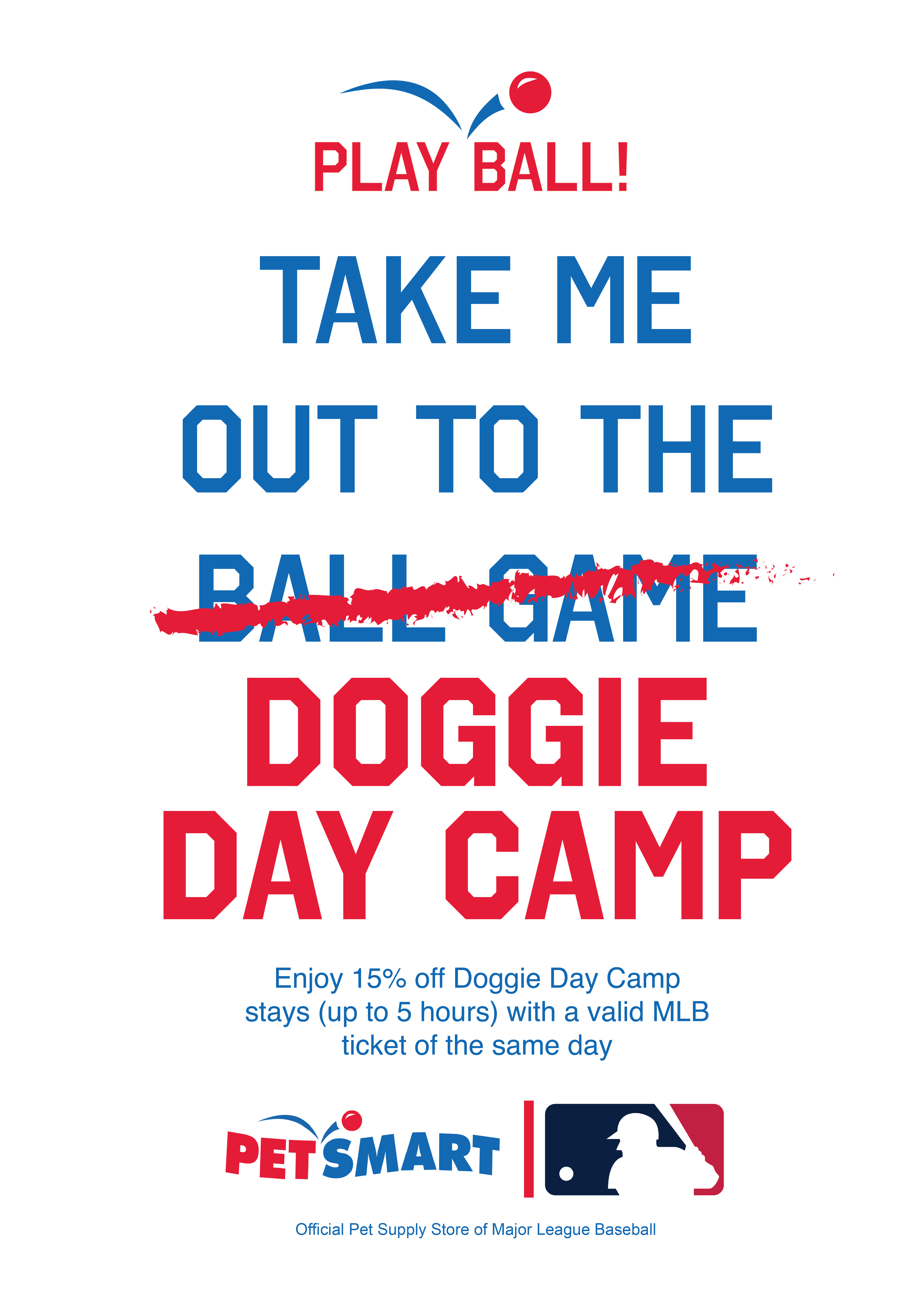 Additionally, PetSmart locations within 50 miles of MLB stadiums will offer 15% off Doggie Day Camp stays (up to 5 hours) with a valid MLB ticket on the same day.